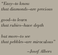 In 1925 the Bauhaus moved to the city of Dessau to a streamlined and revolutionary building designed by Walter Gropius, architect and founder of the school. In Dessau, the Alberses lived alongside the families of artist teachers Lyonel Feininger, Paul Klee, Wassily Kandinsky, Oscar Schlemmer, and others in one of the masters’ houses designed by Gropius. In November 1933 Josef and Anni Albers emigrated to the USA where Josef had been asked to make the visual arts the center of the curriculum at the newly established Black Mountain College near Asheville in North Carolina. They remained at Black Mountain until 1949. Josef continued his exploration of a range of printmaking techniques and took off as an abstract painter, while continuing as a captivating teacher and writer. Anni made extraordinary weavings, developed new textiles, and taught, while also writing essays on design that reflected her independent and passionate vision. During this time Josef and Anni Albers traveled widely both in the United States and Mexico, a country that captivated their imagination and had a strong effect on both of their art. In 1950, the Alberses moved to Connecticut. From 1950 to 1958 Josef Albers was chairman of the Department of Design at the Yale University School of Art. There, and as guest teacher at art schools throughout America and in Europe, he trained a whole new generation of art teachers. Meanwhile he wrote, painted, and made prints. In 1971, he was the first living artist ever to be honored with a solo retrospective at the Metropolitan Museum of Art in New York. He was still working on his Homages to the Square at the time of his death in New Haven, Connecticut in 1976.